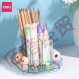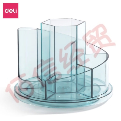 得力(deli)旋转笔筒办公室桌面收纳盒笔桶学生桌面多功能创意透明笔筒 【8943】圆形旋转至透明蓝 自营