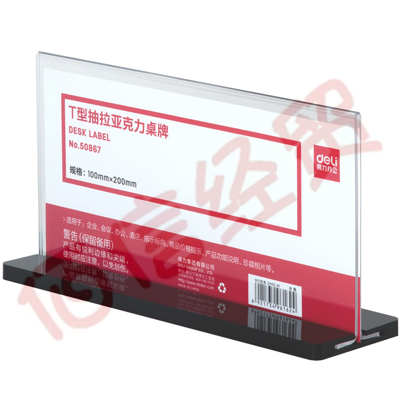 得力(deli) 亚克力T型台卡台签台牌桌签双面透明桌牌展示牌酒水牌 小号(100*200mm) 50867 自营
