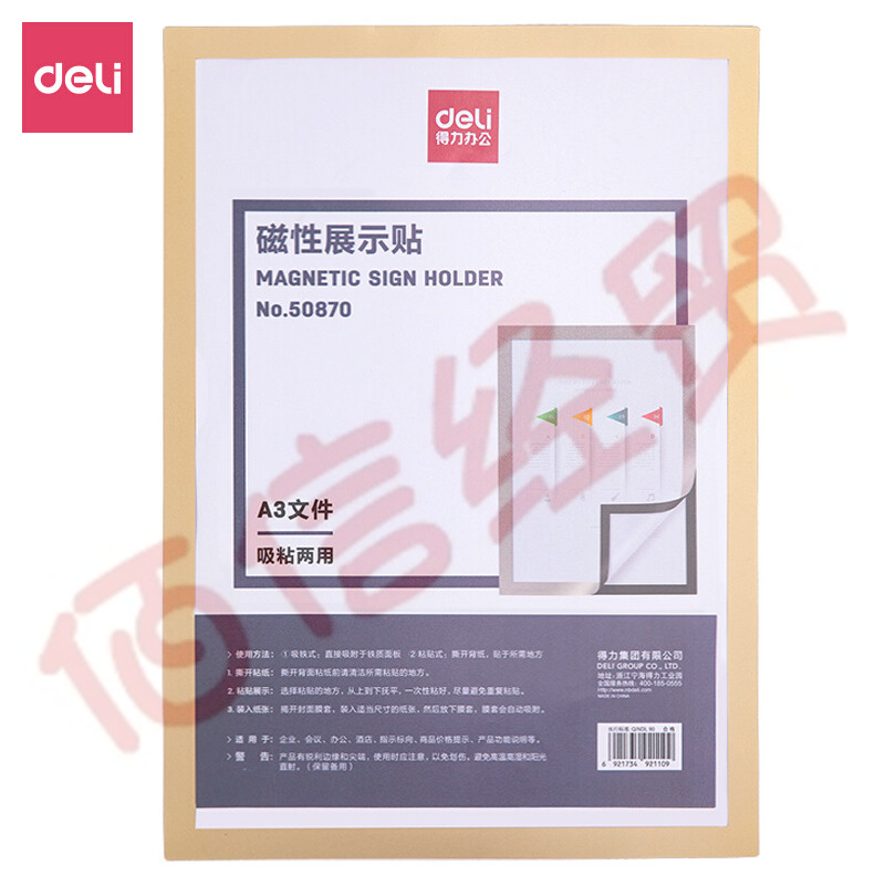 得力(deli)A3磁性展示贴 营业执照正本保护套 公告栏通知贴纸 金色50870 自营