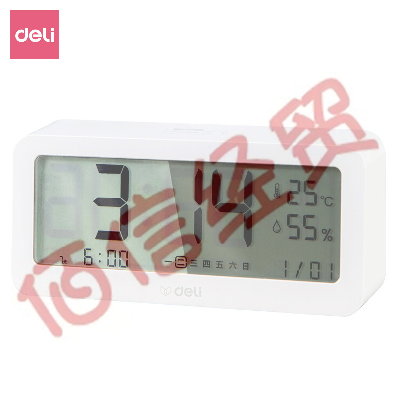得力(deli)多功能电子闹钟 学生背光电子钟 温湿度计功能 中秋节儿童礼物 白色8826 自营
