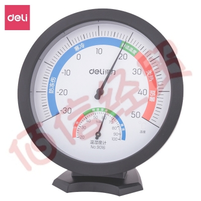 得力(deli) 温湿度计 可立放可悬挂室内湿度计温度表 9016黑色 260846 自营