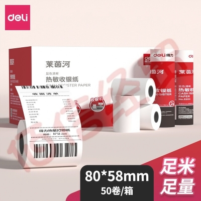 得力3204莱茵河热敏收银纸80*58mm餐饮外卖收银机打印纸 超市收银小票纸 50卷(28米/卷)单卷足米 自营