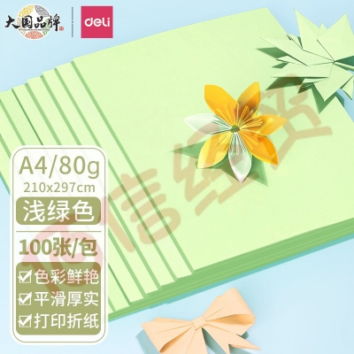 得力(deli)A4 80g浅绿色复印纸 彩色打印纸 儿童手工折纸剪纸彩纸 非硬卡纸 100张/包 7757 自营