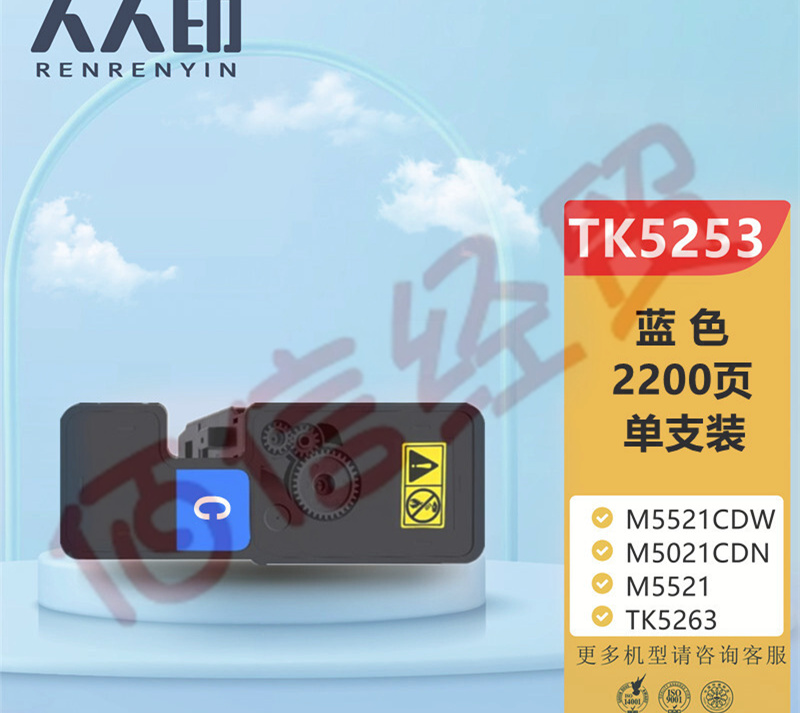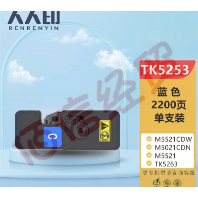人人印适用京瓷TK5253粉盒M5521CDW硒鼓M5021CDN复印机墨粉TK5263墨盒M5521 TK5263大容量墨粉盒蓝色 带芯片 自营
