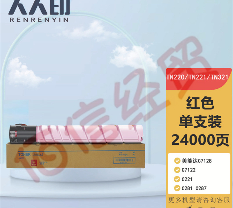 人人印TN220粉盒红色 适用柯尼卡美能达C7128 C7122 C221 C281 C287墨盒 震旦ADT223 ADC223 S 283 碳粉 自营