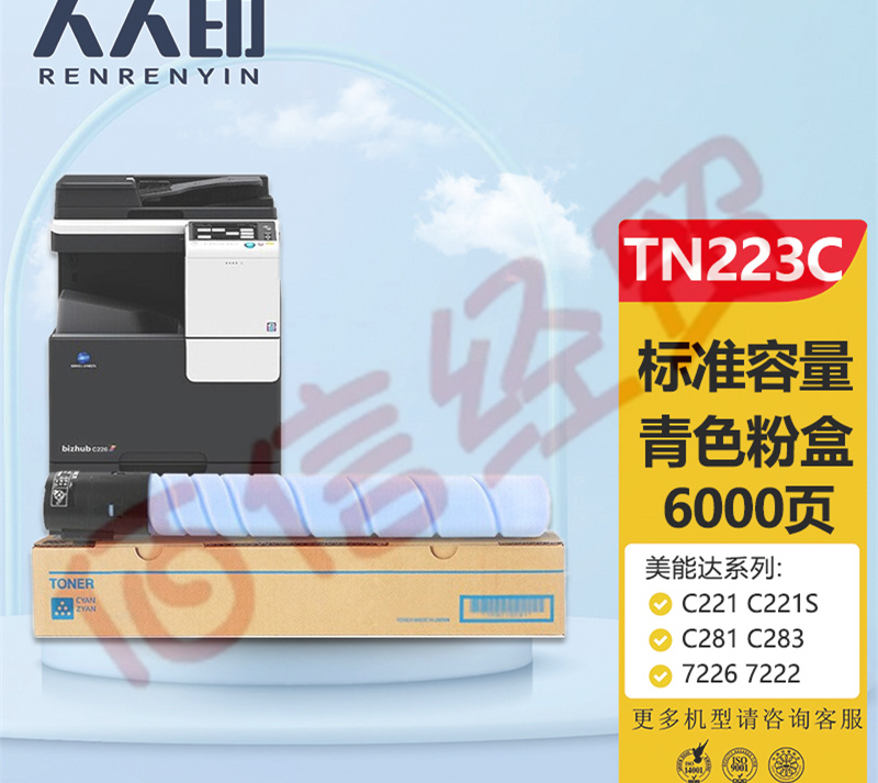 人人印 美能达TN223蓝色墨粉盒 柯尼卡美能达TN224 C256 C266 C7222 C7226墨盒 柯美C226碳粉 (标准容量) 自营