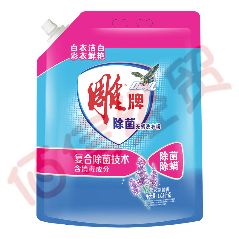 雕牌 除菌无磷洗衣粉1.03kg 薰衣草香 除菌率99% 有效除菌 轻松去渍 白衣洁白 彩衣鲜艳 1袋价格 每箱8袋(整箱售) 自营