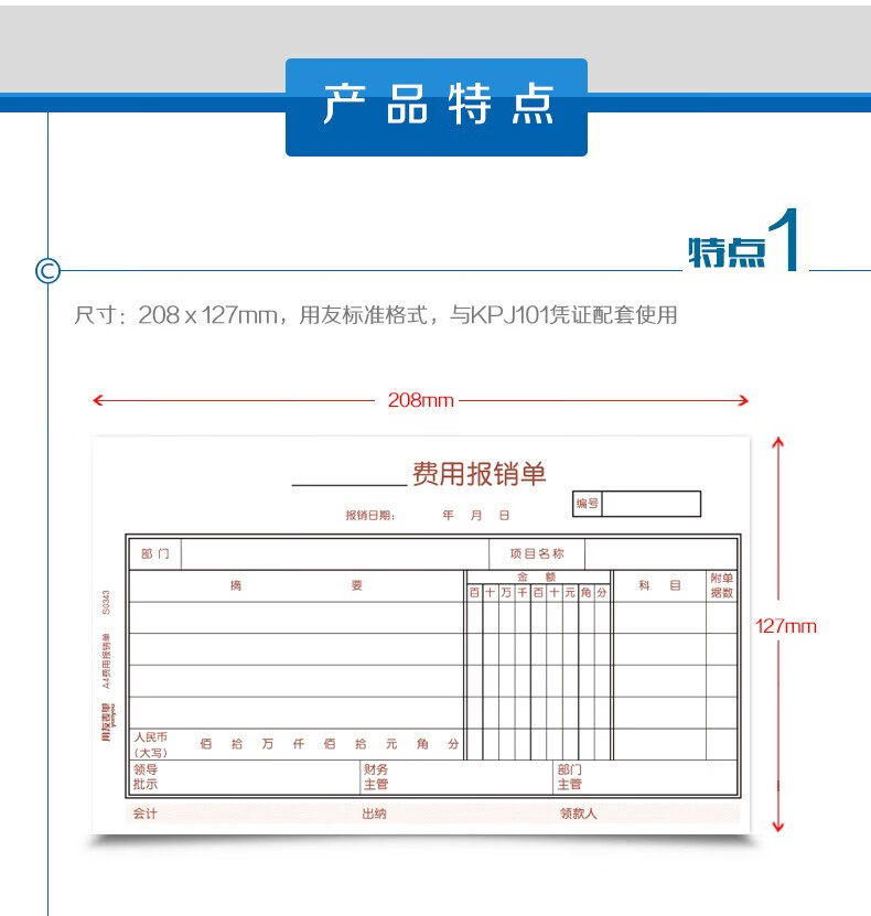 西玛用友表单 S0343 费用报销单 财务用品 财务报销单费用单 5本/包--20包/箱(单包价-整箱售-拍20组) 自营