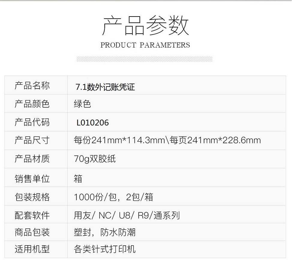 西玛 针打7.1数外记账凭证纸 L010206 241*114.3mm 2千份适用于用友财务软件 7.1数外记账凭证 L010206 241*114.3mm 2000份/箱 自营