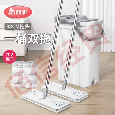 美丽雅 洗刷刷平板拖把桶特大号 一刷净免手洗懒人地拖一拖净 干湿两用大拖头平板拖把 共2个拖布(2个/箱)