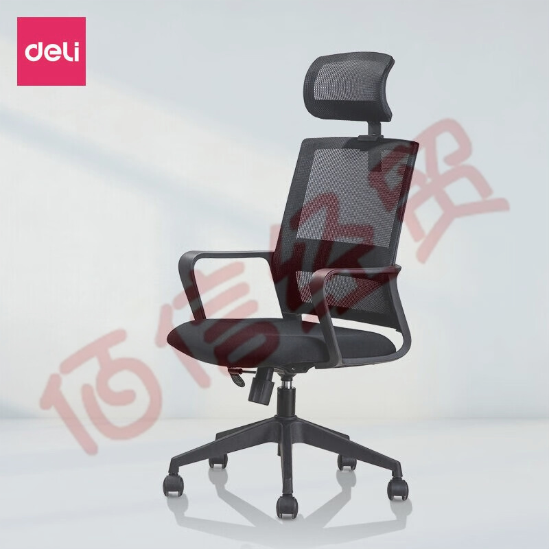 得力(deli) 简约舒适办公椅黑色 人体工学电脑椅 带头枕舒适办公椅子升降可控带头枕 升级带头枕+逍遥仰倾底盘87092 自营