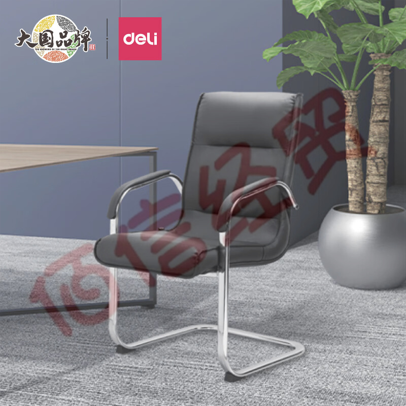 得力 deli 弓形脚会议椅 人体工学生态皮椅 高档简约培训 电脑椅 91201 自营
