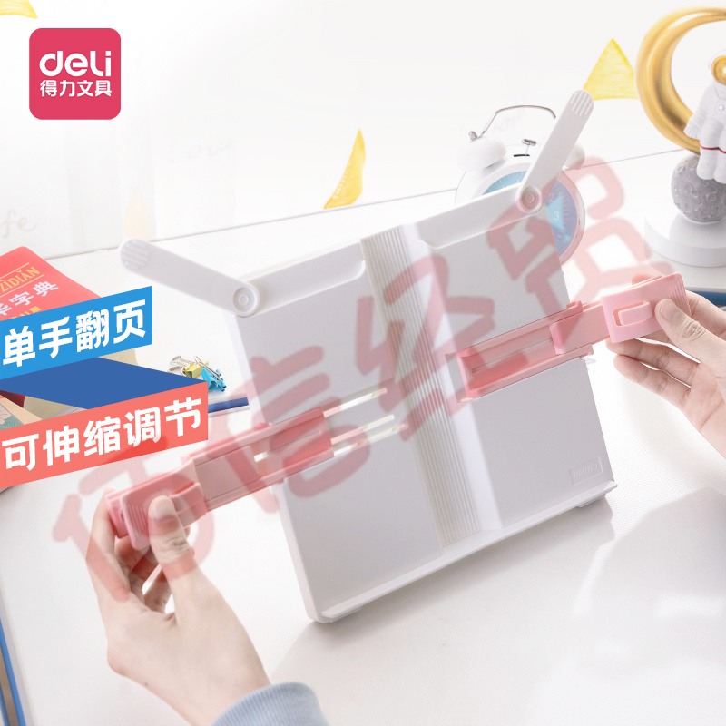 得力(deli)多功能阅读架 可伸缩折叠便携式读书夹儿童坐姿矫正阅读支架课本夹书文具六一礼物 粉白色 70531 自营