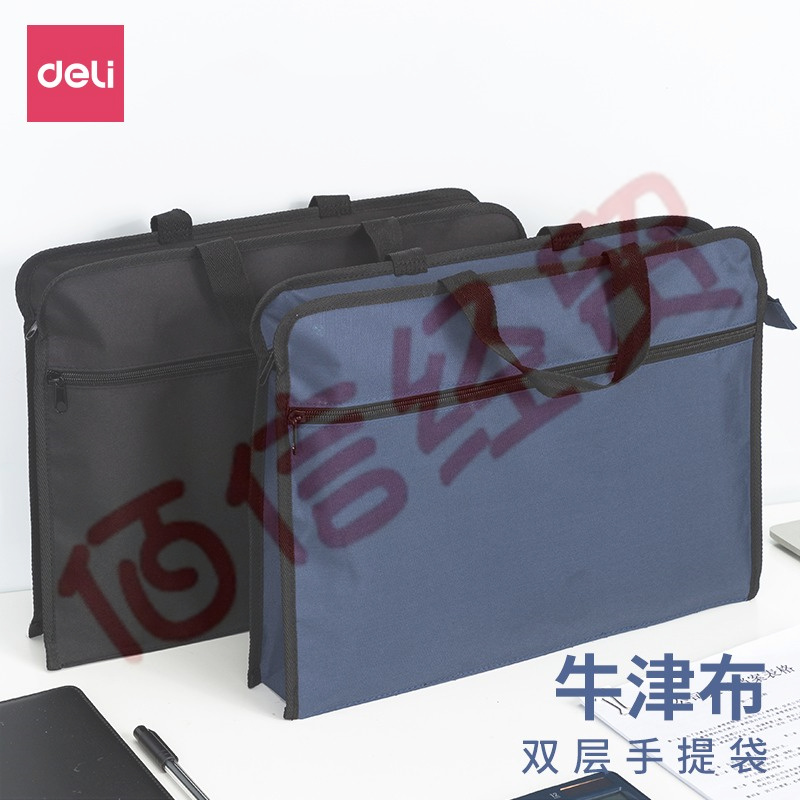 得力手提拉链袋公文包电脑收纳包袋学生用手提袋资料袋商务拉链袋男女办公加厚会议电脑包简约素版 蓝色 63753 自营