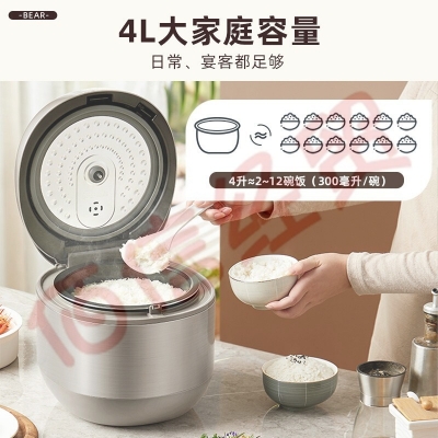 小熊(Bear)电饭煲 电饭锅4升大容量 多功能煮饭锅家用智能2-6人 大功率厚釜内胆饭锅柴火饭 【钢身设计】DFB-P40Y5 4L 自营