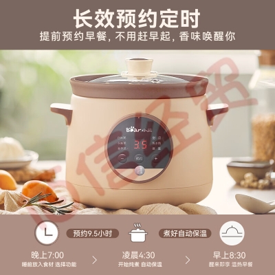 小熊(Bear) 电炖锅 电炖盅 婴儿辅食锅煮粥锅煮粥神器 紫砂锅燕窝炖盅 电砂锅煲汤锅炖汤锅 DDG-E15H1 自营