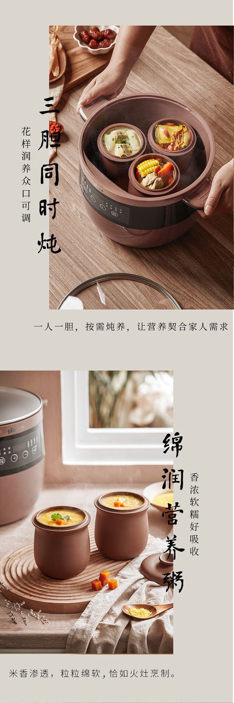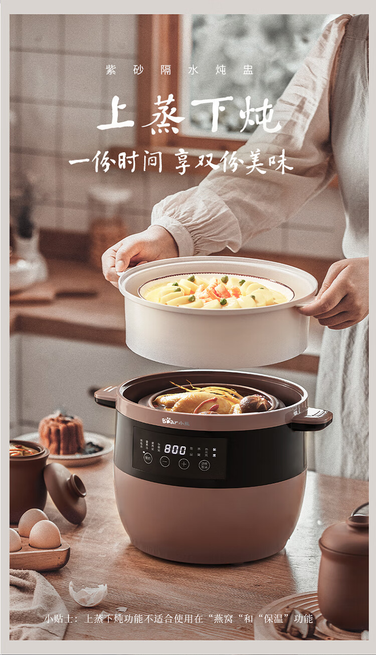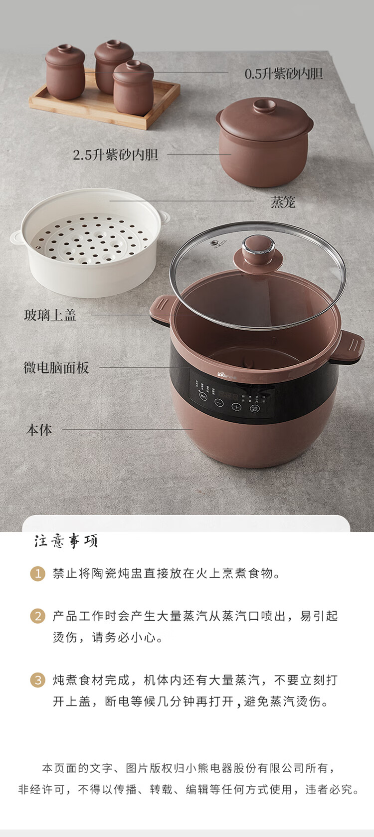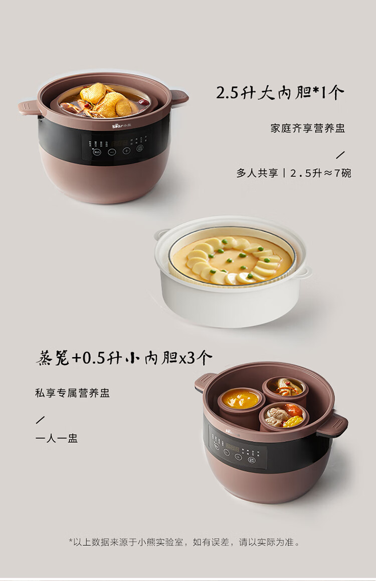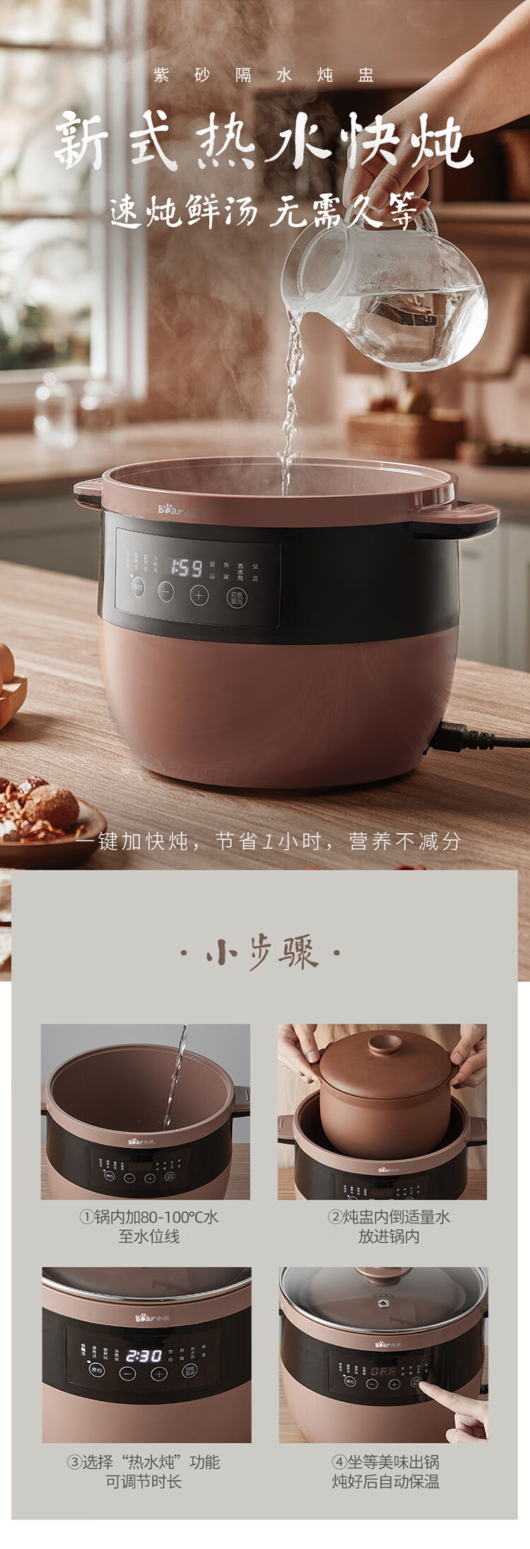 小熊(Bear) 电炖锅 电炖盅 煲汤锅 紫砂锅 炖汤锅 隔水炖盅煮粥陶瓷电砂锅燕窝熬粥上蒸下炖 【4.5L大容量】一盅五胆 DDZ-B45Z1 自营