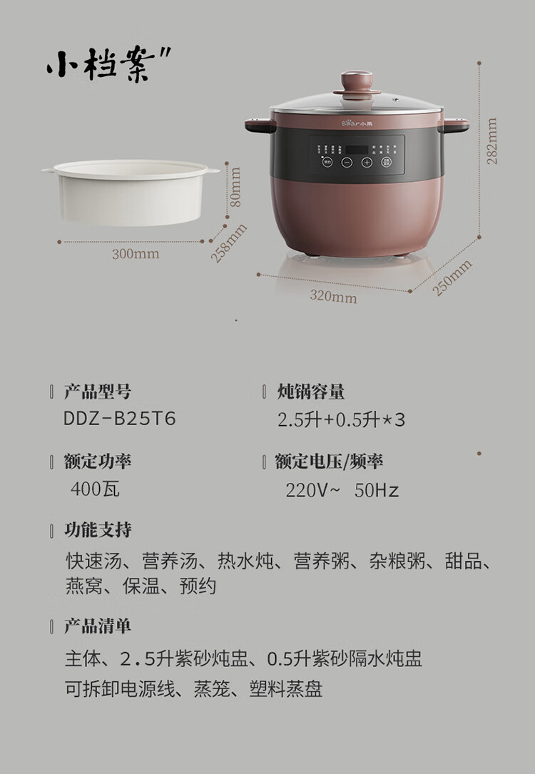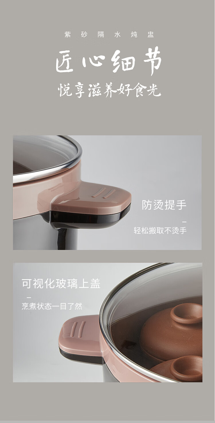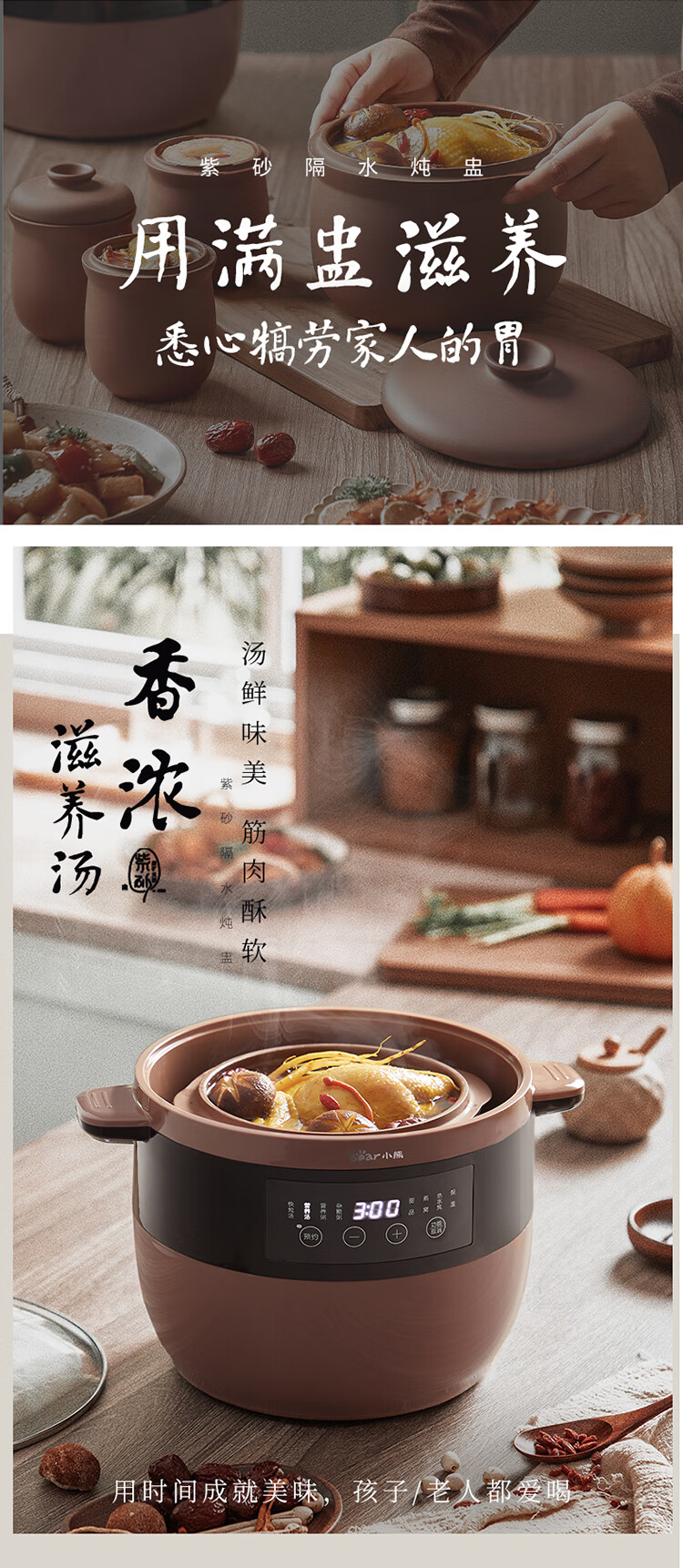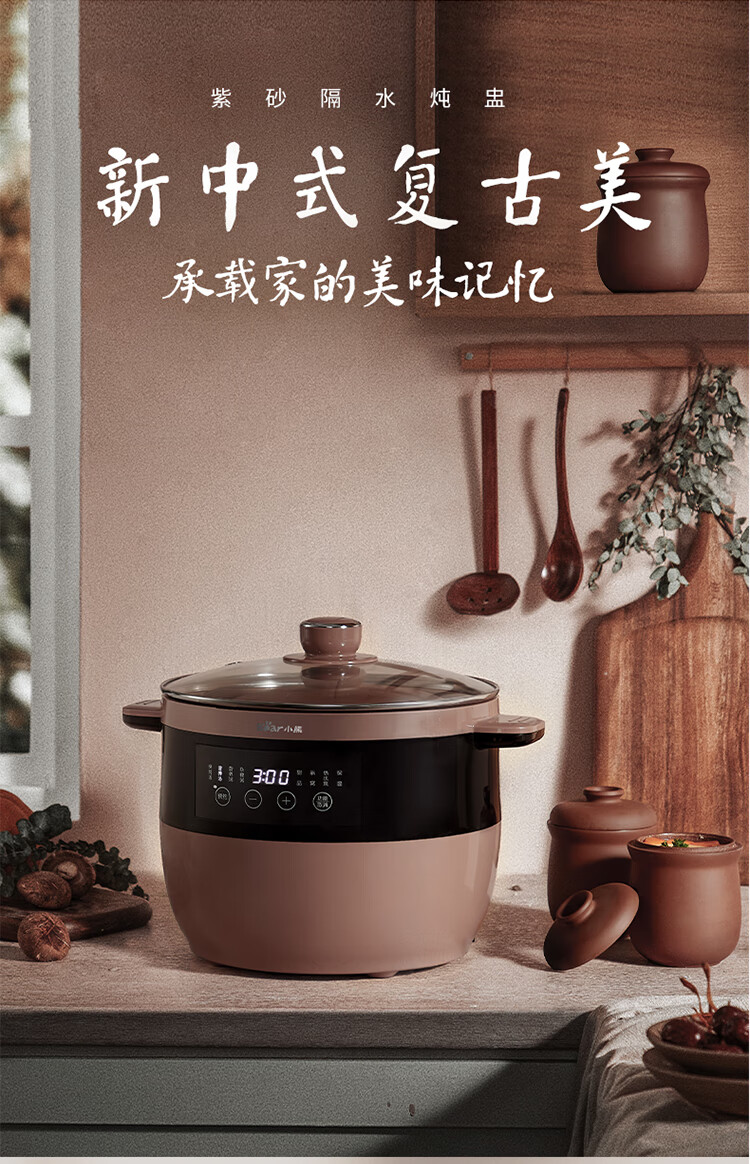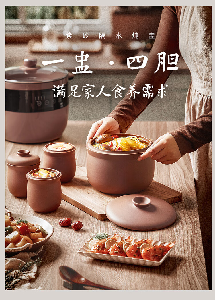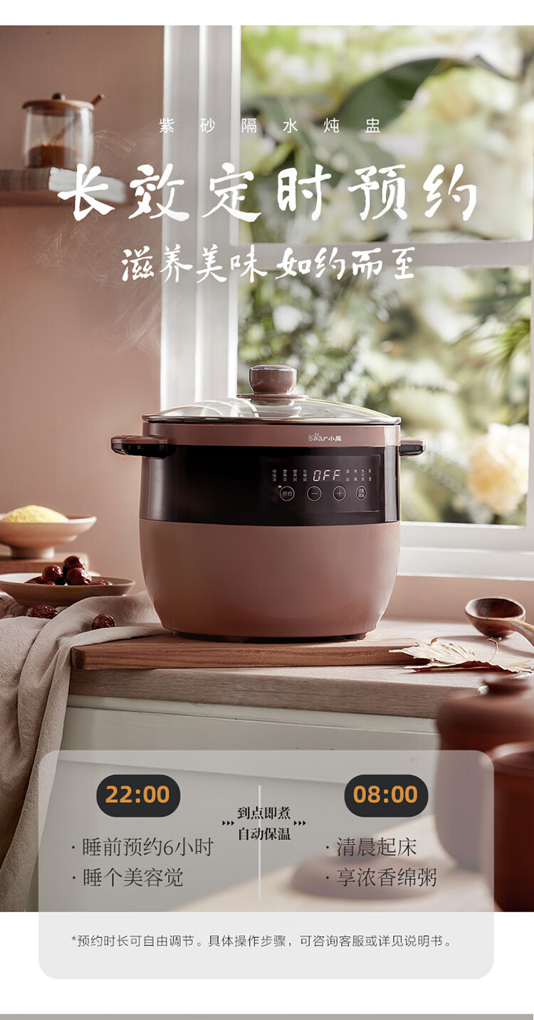 小熊(Bear) 电炖锅 电炖盅 煲汤锅 紫砂锅 炖汤锅 隔水炖盅煮粥陶瓷电砂锅燕窝熬粥上蒸下炖 【4.5L大容量】一盅五胆 DDZ-B45Z1 自营