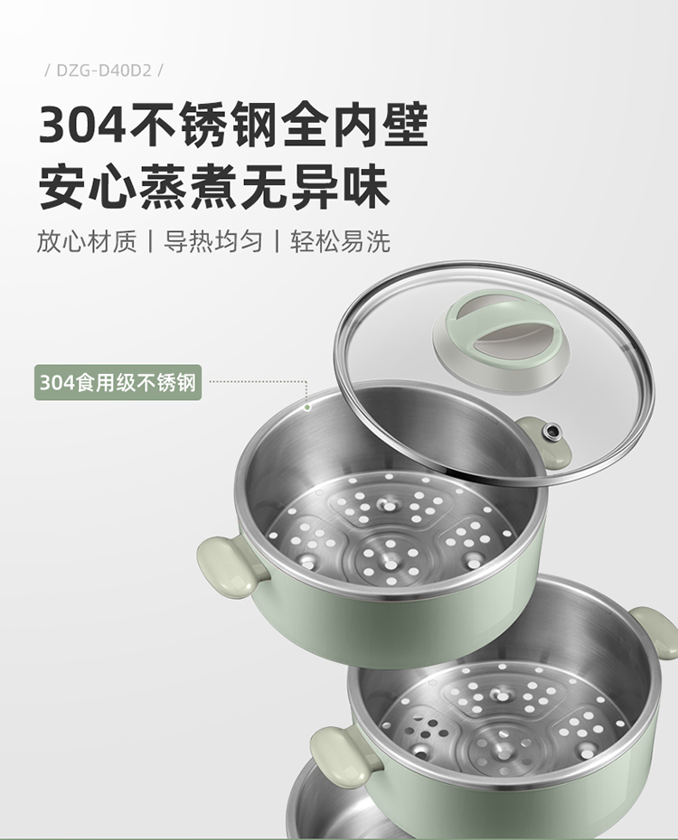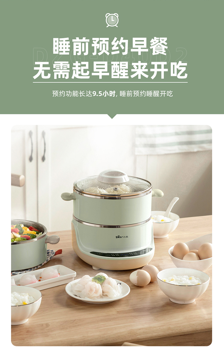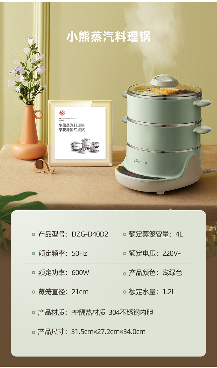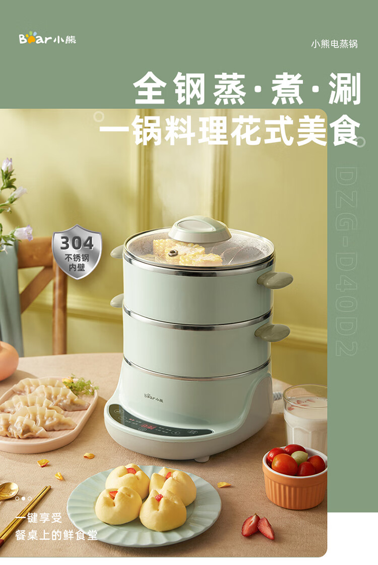 小熊(Bear)电蒸锅 电煮锅 多用途锅 多功能家用蒸包子锅双层4L分体式 DZG-D40D2 自营