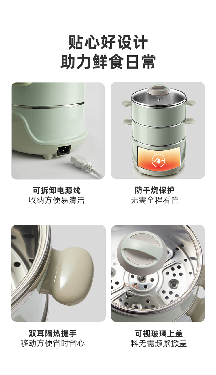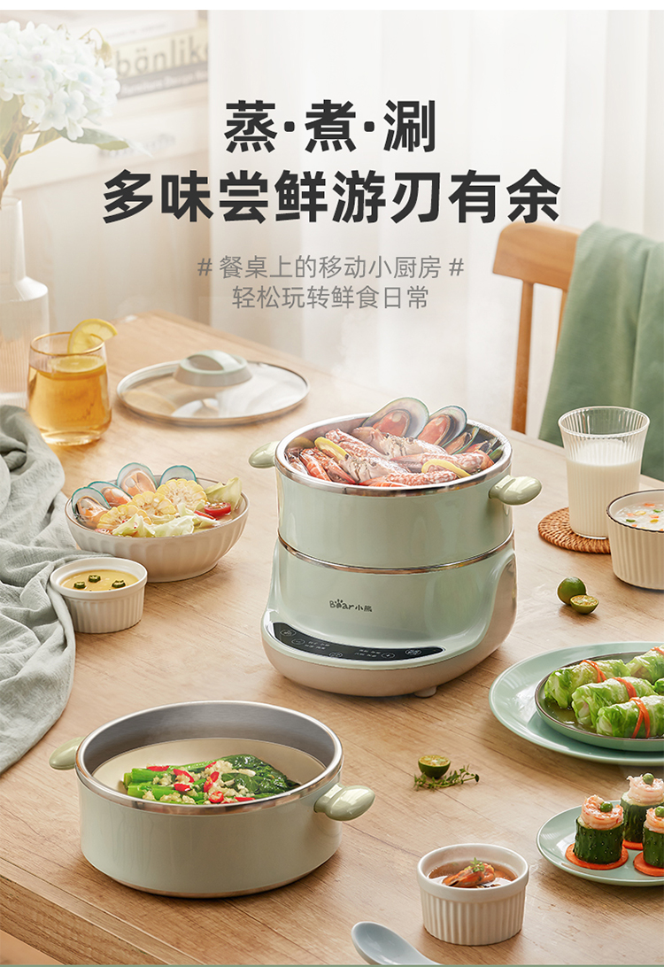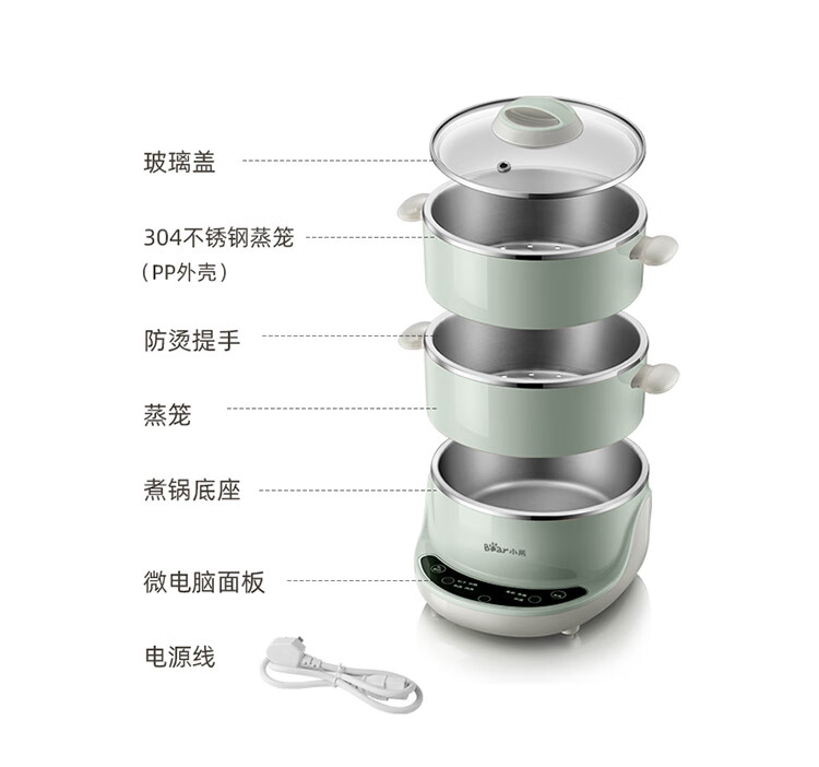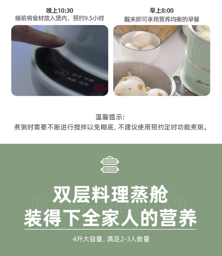 小熊(Bear)电蒸锅 电煮锅 多用途锅 多功能家用蒸包子锅双层4L分体式 DZG-D40D2 自营