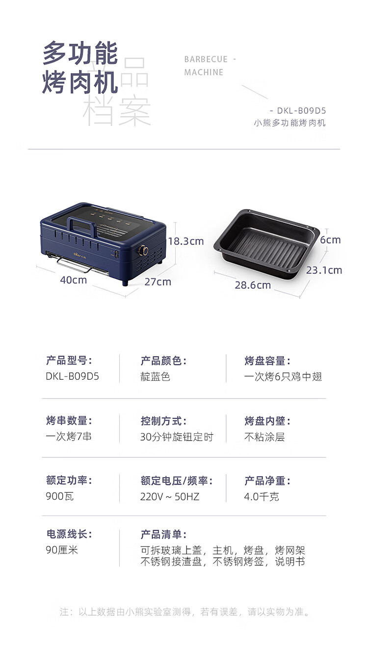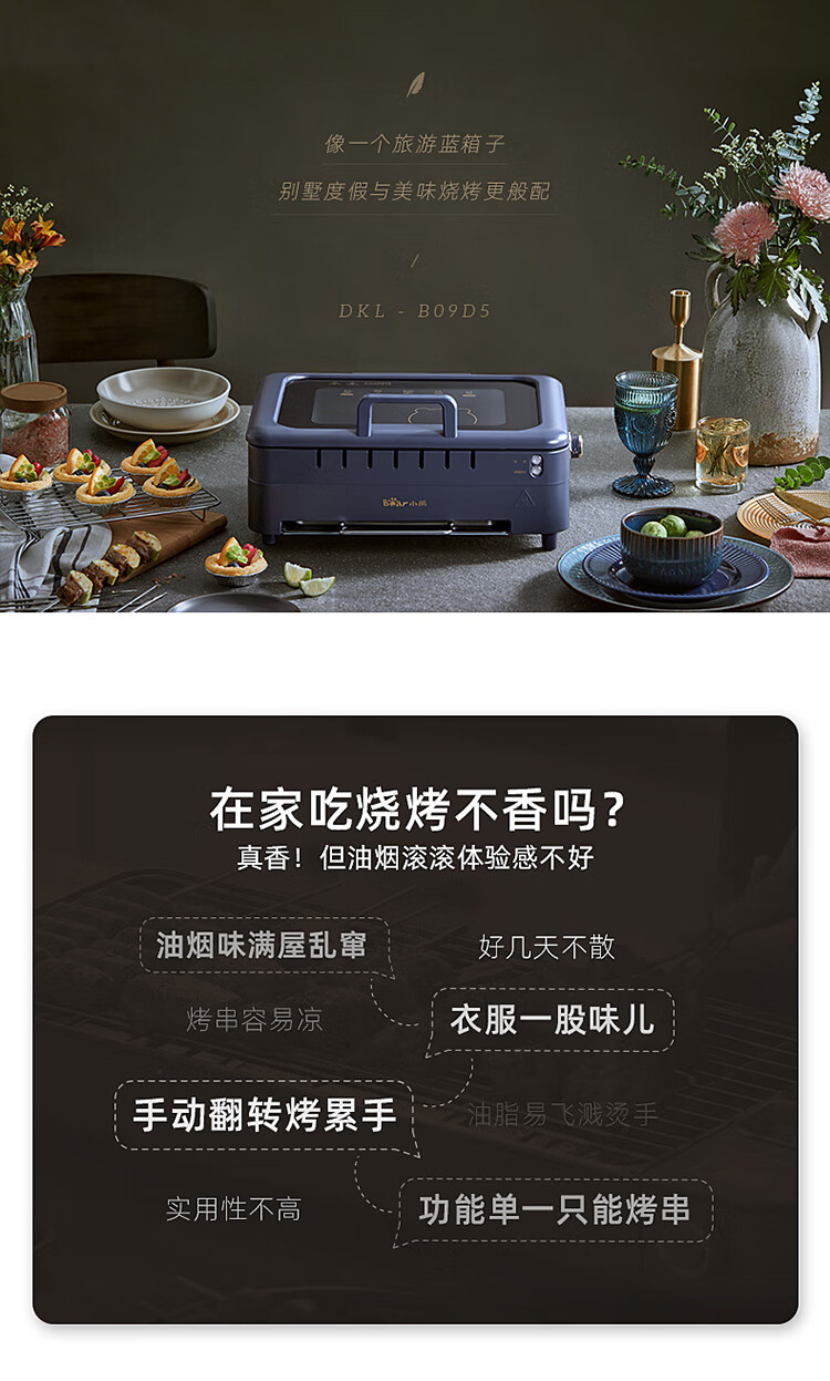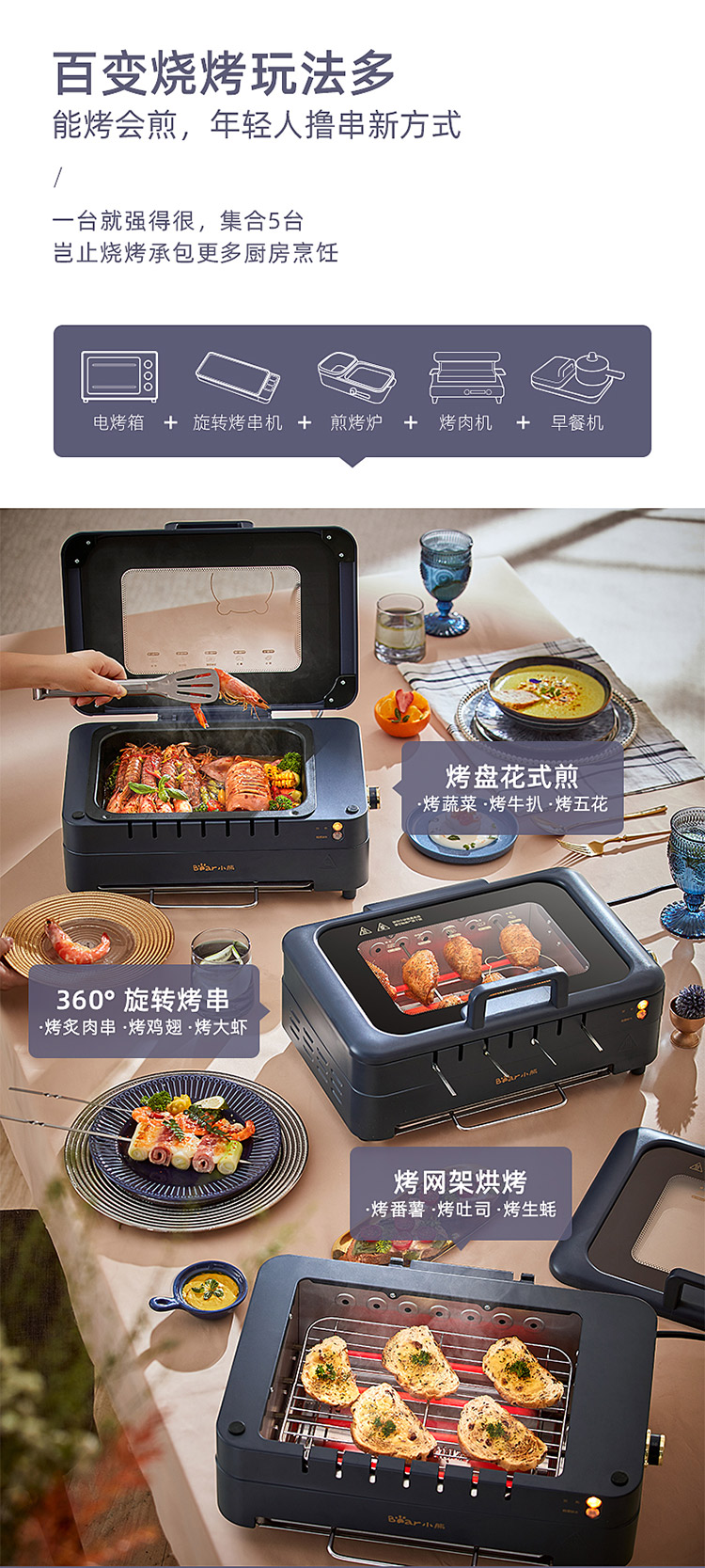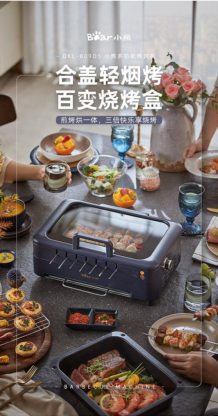 小熊(Bear) 电烧烤炉 烤烧炉烤肉盘多功能烤肉机烤串机家用无烟照烧炉烧烤机 【星厨推荐】DKL-B09D5 自营