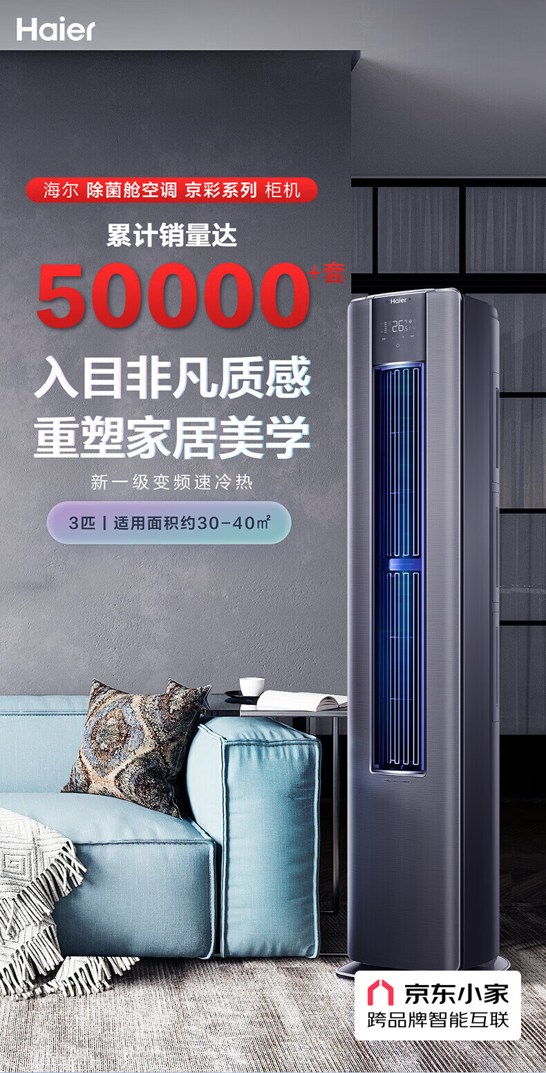 海尔(Haier)新一级变频 3匹 京彩 客厅空调立式柜机 布艺外观智能 KFR-72LW/81@U1-La 自营