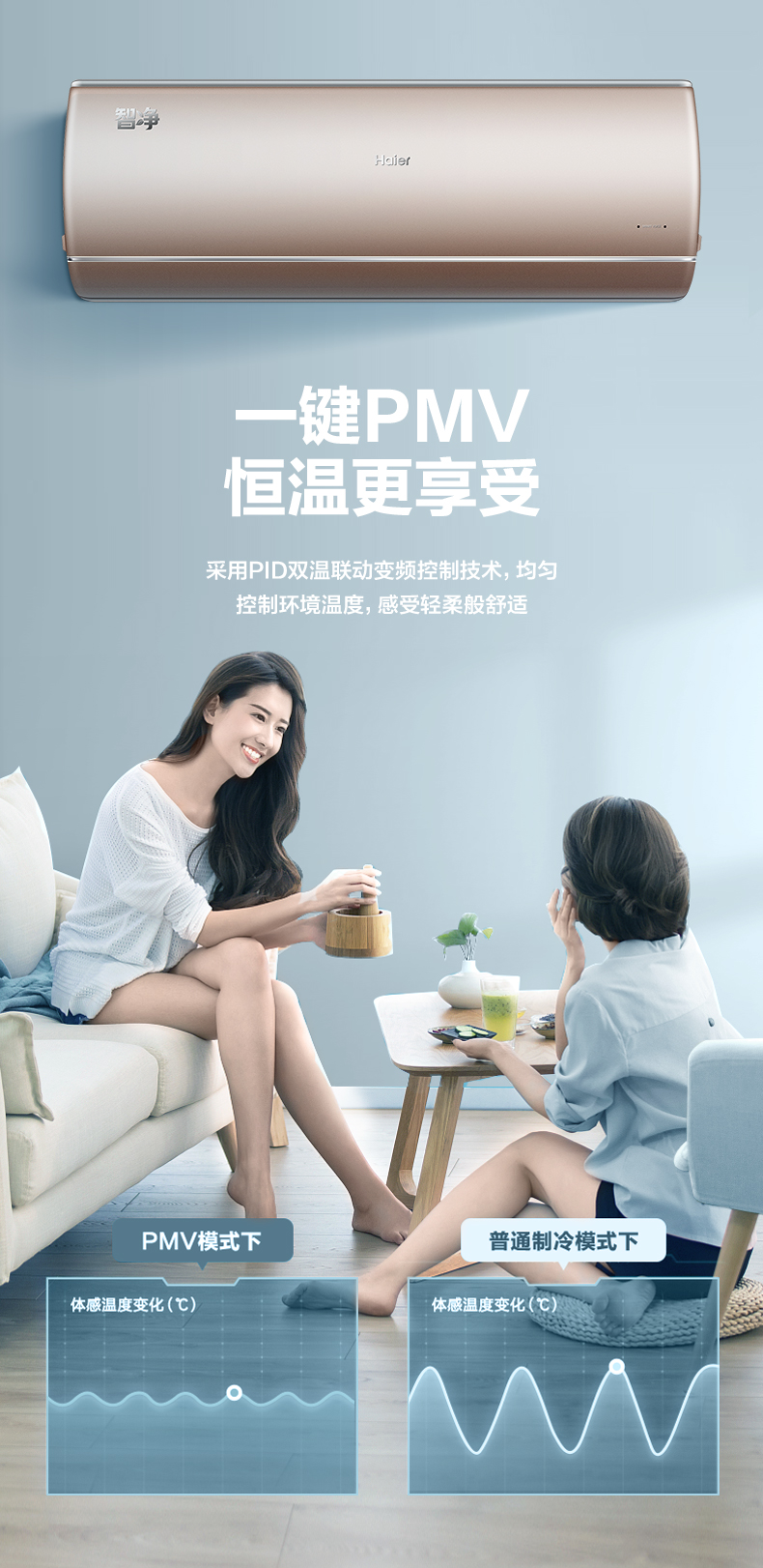 海尔(Haier)新一级 大1.5匹 智净 变频冷暖 壁挂式空调挂机 KFR-35GW/81@VU1-Ca(金) 自营