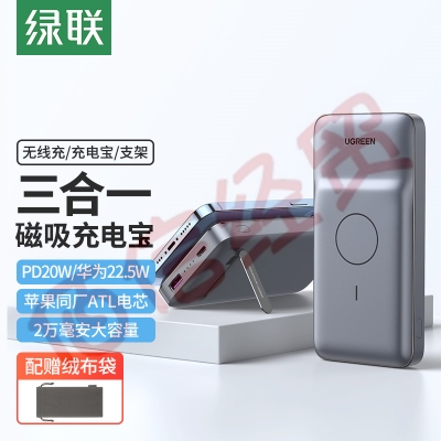 绿联 磁吸无线充电宝20000毫安时 支持MagSafe快充苹果20W华为22.5W 大容量便携移动电源通用iPhone13/12手机 自营