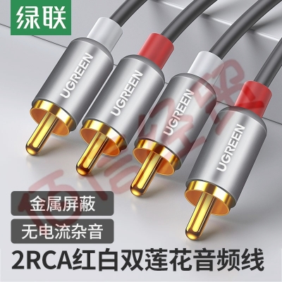 绿联 双莲花头音频线 2RCA公对公红白转接线 AV二对二信号线 DVD电脑CD电视机连接音响箱功放 黑色 1.5米 自营