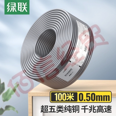 绿联(UGREEN)灰色超五类网线100米【0.50mm纯铜线芯】千兆双绞箱线家装网络布线监控专用 NW108/11253 自营