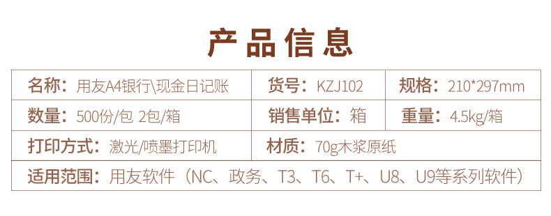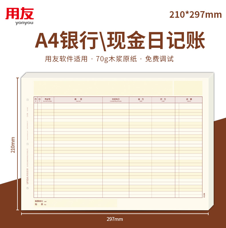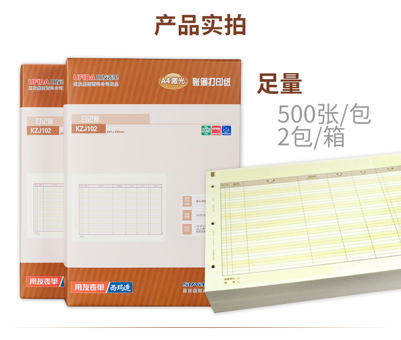 西玛用友现金(银行)A4日记账KZJ102--500份/包 2包/箱 297*210(整箱价)(整箱售) 自营
