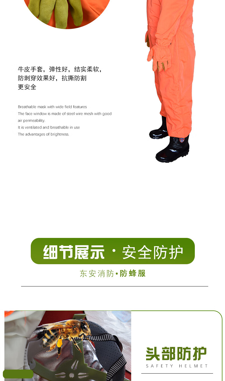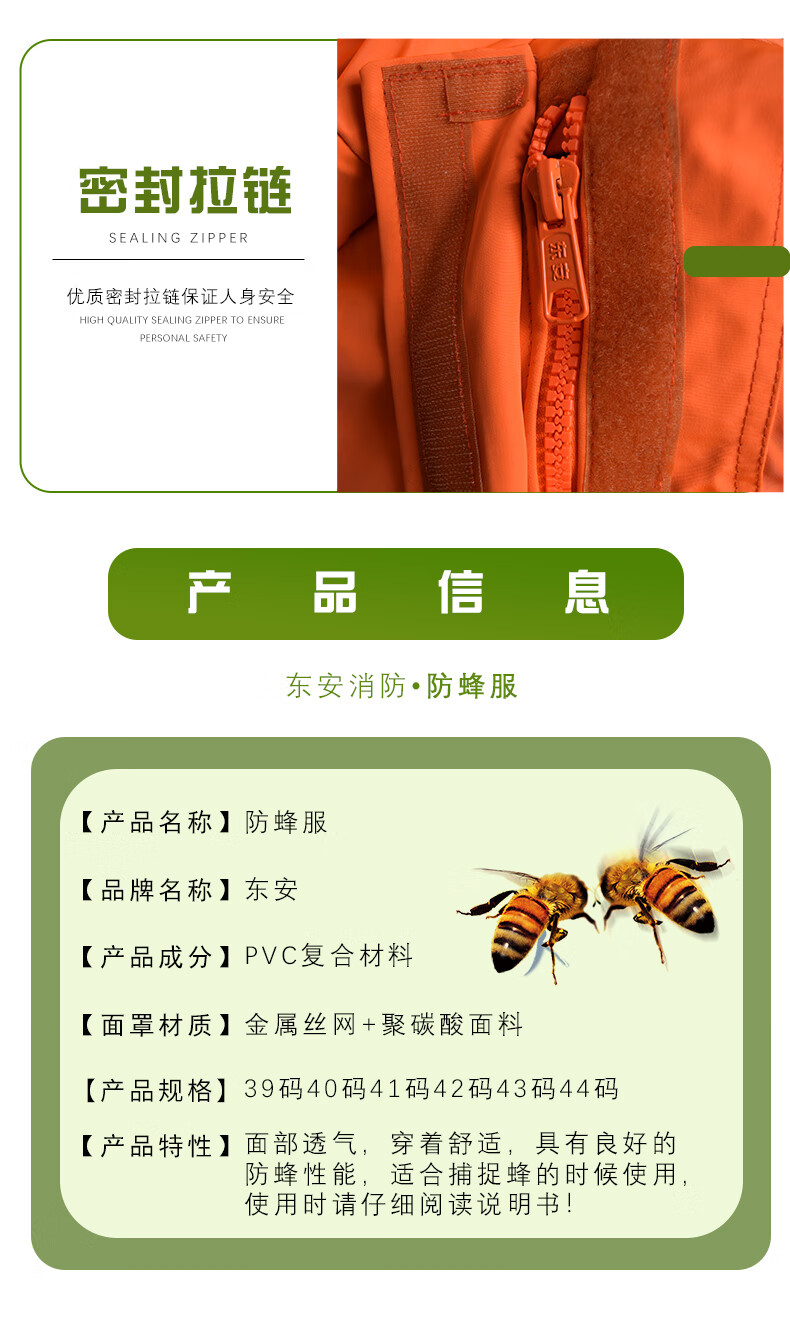 东安(DA)全封闭式防蜂服防蜂衣消防队专业防马蜂服 连体式养蜂服防毒蜂灭蜂服防 39码-44码(下单标注) 自营