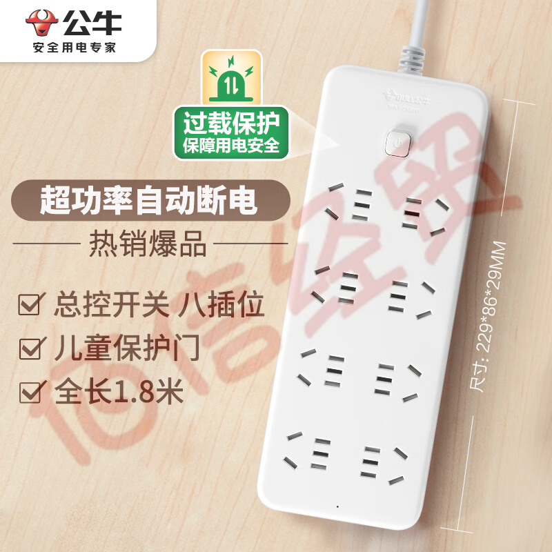 公牛(BULL)超功率保护 新国标插座/插线板/插排/排插/接线板/拖线板 GN-B2080 8位总控全长1.8米 自营