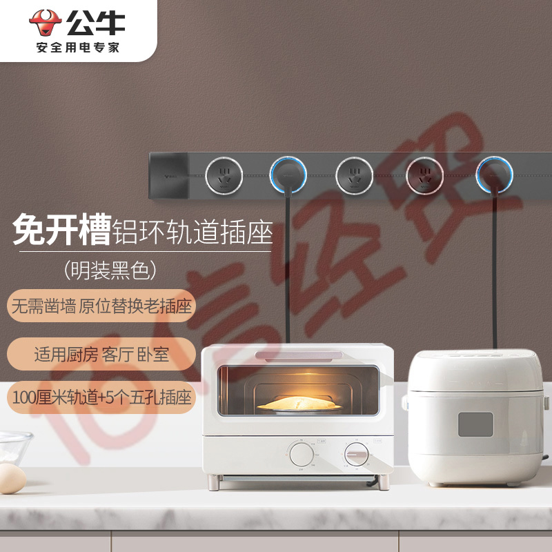 公牛(BULL)明装 轨道插座 可移动墙壁插座壁挂式/插线板/接线板多功能免打孔 100厘米+5个五孔铝环插座黑色 自营