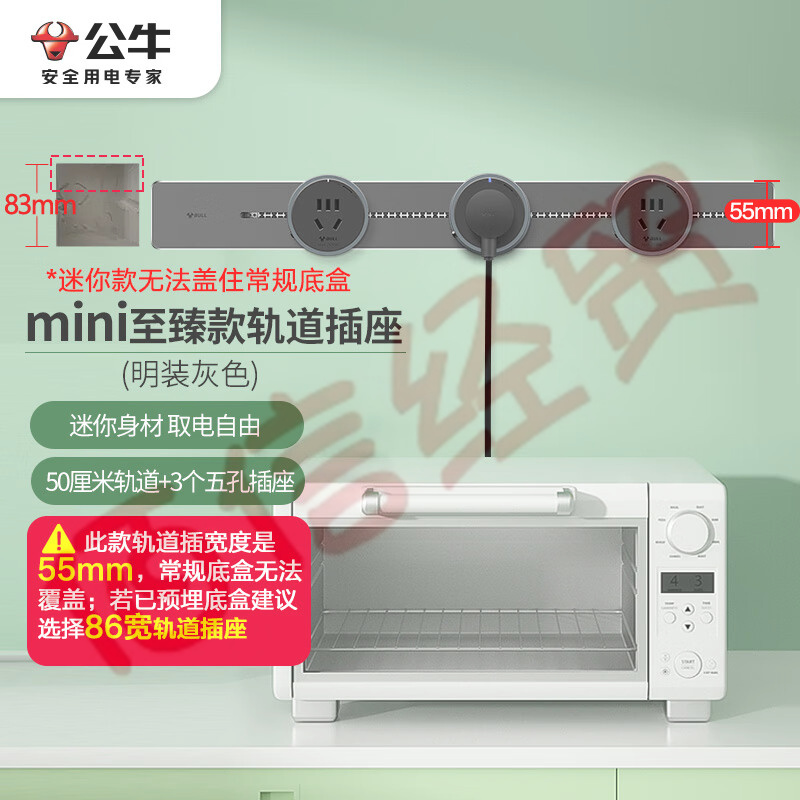 公牛(BULL)明装 轨道插座 mini可移动墙壁插座壁挂式/插线板/接线板 多功能免打孔 50厘米+3个五孔 灰色 自营