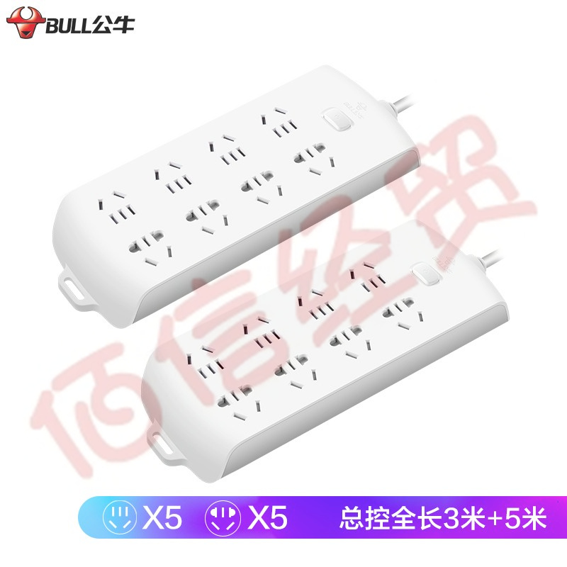公牛(BULL) 插座/插线板/插排/排插/接线板/拖线板 8位总控3米+5米套装 GN-B2080 自营