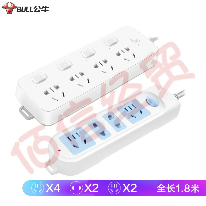 公牛(BULL)新国标插座/插线板/插排/排插/接线板 4位分控+4位总控全长1.8米套装 自营