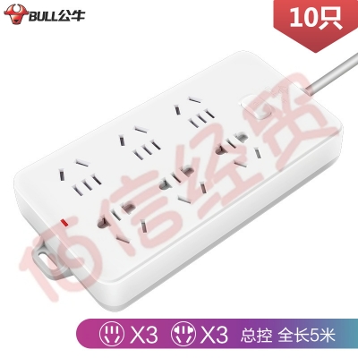 公牛(BULL) GN-109K 插座/插线板/插排/排插/接线板/拖线板 6位总控全长5米(10只装) 自营