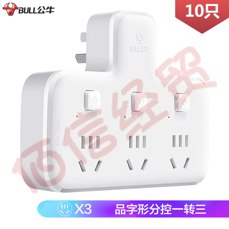 公牛 GN-96033 转换插头/品字形一转三插座/无线转换插座/电源转换器 3位分控插座 (10只装) 自营