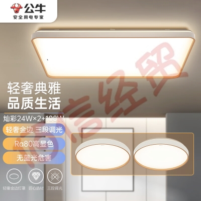 公牛(BULL)LED吸顶灯 北欧现代简约客厅卧室书房超薄灯具 MX-C108U-BD灿彩【两室一厅】客厅灯+卧室灯x2 自营
