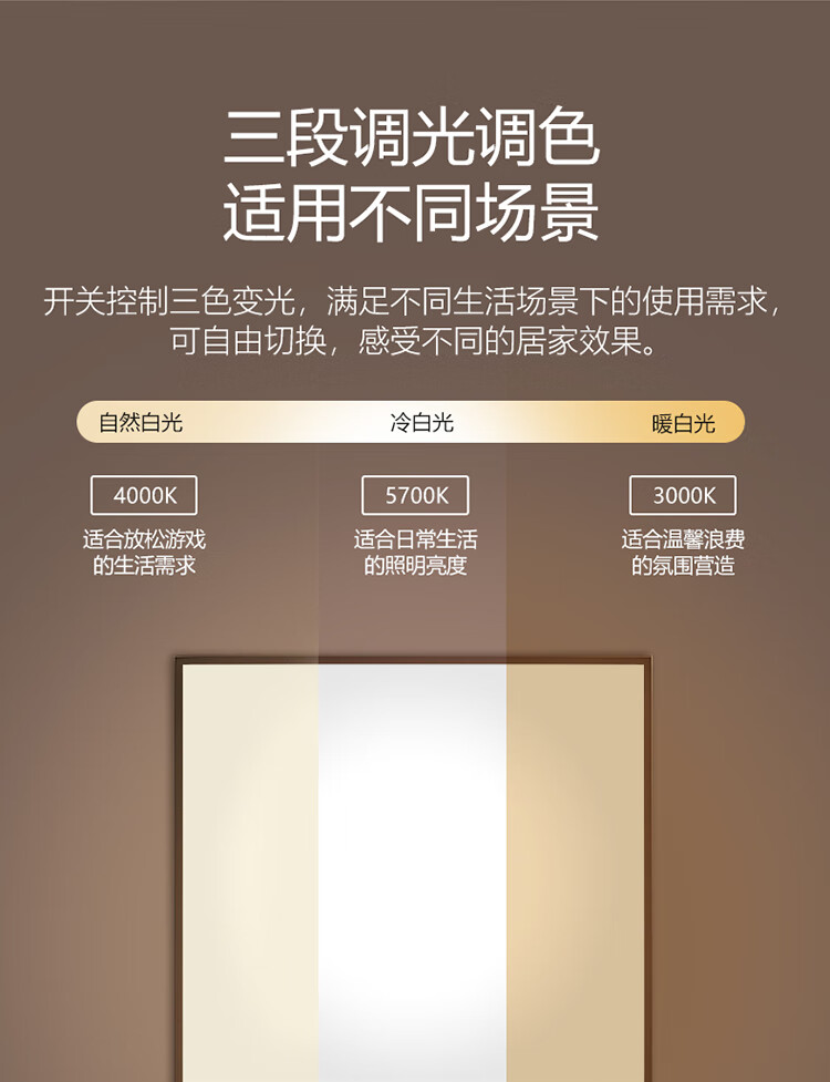 公牛(BULL)吸顶灯 朗晨长方形卧室灯客厅灯全屋灯北欧风简约现代三段调光调色150W 自营