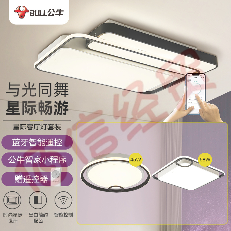 公牛(BULL)LED吸顶灯X36星际MX-M130B-CD无线遥控/小程序智能控制/无极调光灯具 :客厅灯+方形灯+卧室灯 自营