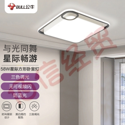 公牛(BULL)LED吸顶灯 X36星际系列 MX-M060B-CD客厅灯卧室灯餐厅灯 三段调光 方形58W 自营