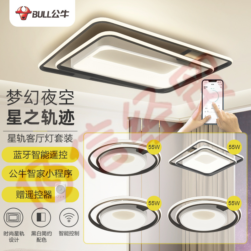 公牛(BULL)LED吸顶灯X35星轨系列MX-M130A-CD遥控器小程序控制无极调光/三档调色 客厅灯+方形灯+圆形灯*3 自营