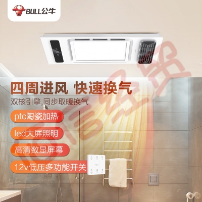 公牛(BULL)浴霸集成吊顶浴室大功率风暖浴霸GY03AQT轻触开关LED大屏照明【双核引擎+高清数显屏+四周进风】 自营