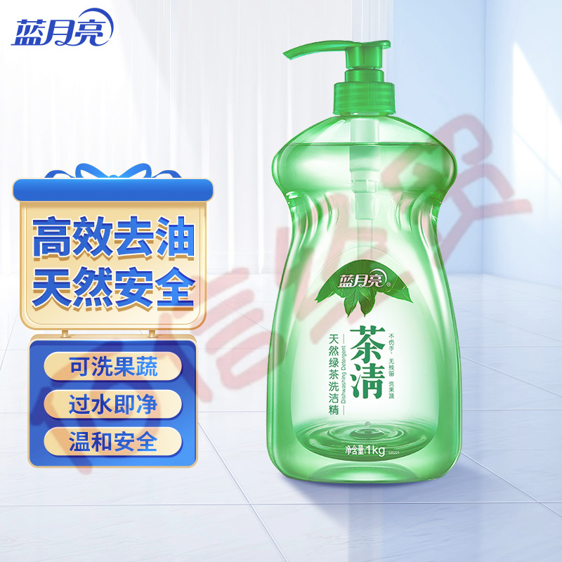 蓝月亮 茶清洗洁精 洗涤精洗涤灵(绿茶清香)1kg 高效洁净 食品可用 12瓶/箱(单瓶价)(整箱售) 自营
