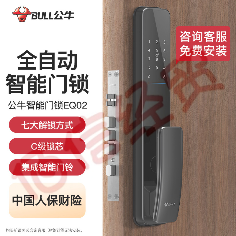 公牛(BULL) 智能门锁 家用防盗门电子锁 指纹锁密码锁APP/wifi带门铃 C级锁芯 全自动电子锁 EQ02王力锁体 自营