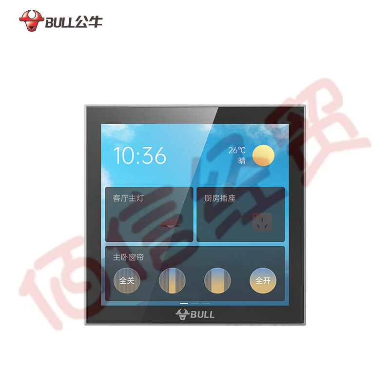 公牛(BULL) 开关插座 智能开关 智能液晶屏网关 语音APP控制86型墙壁开关面板G55C666 灰 暗装 自营