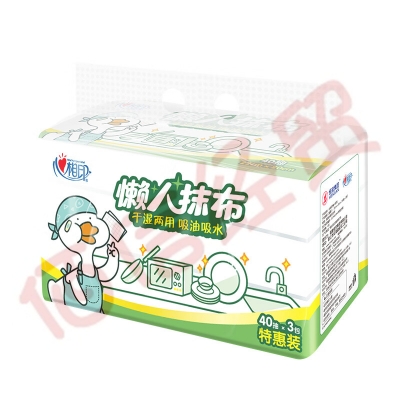 心相印 不鸭懒人抹布厨房一次性抹布厨房用纸抽取式40抽*3包共120抽 自营