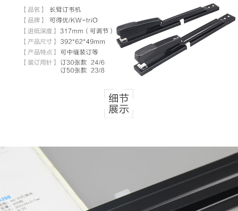 可得优 中缝订书机骑马钉书机加长长臂装订机A3纸加厚订书器定书机 订50张款(5887) 自营